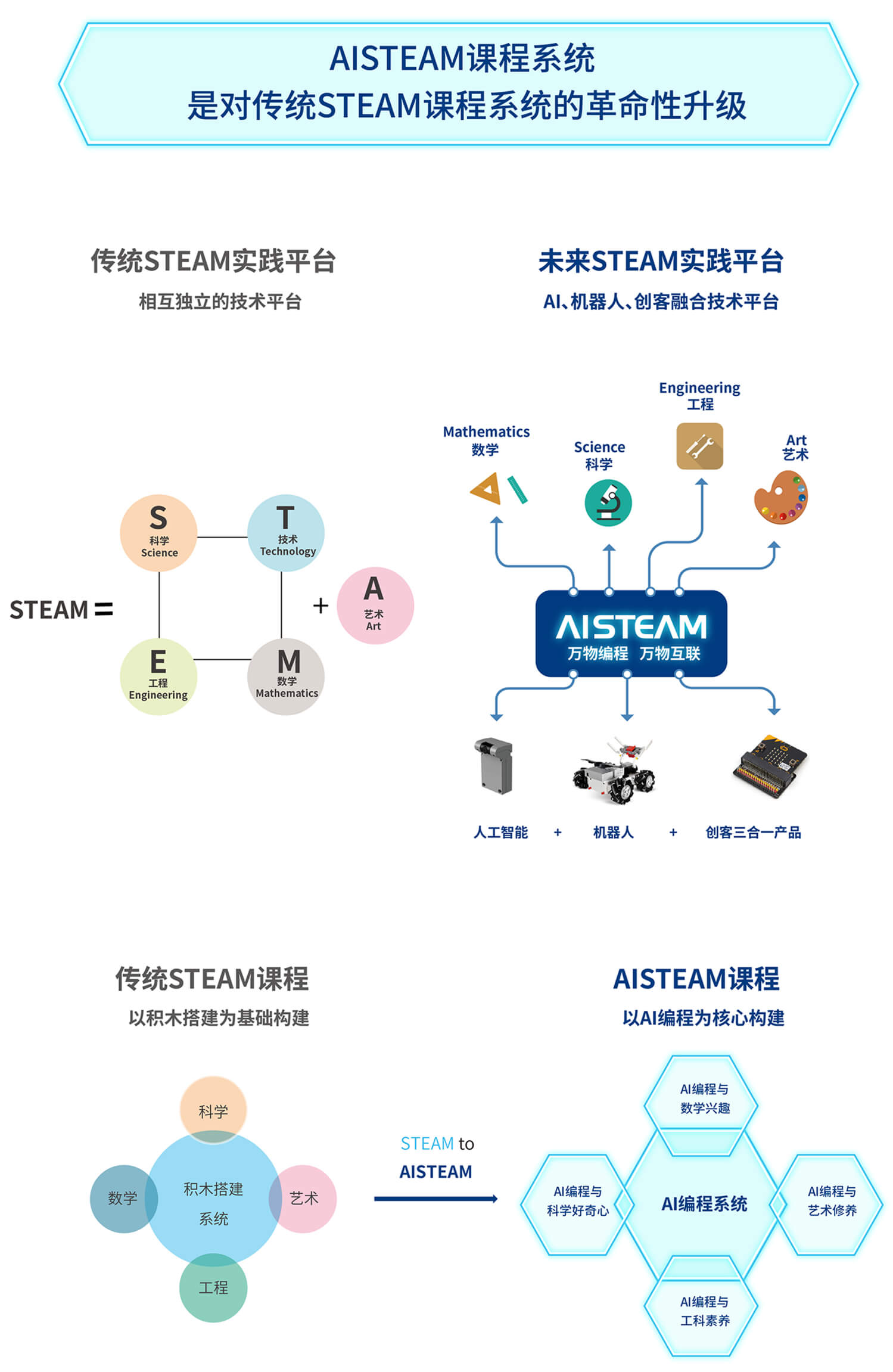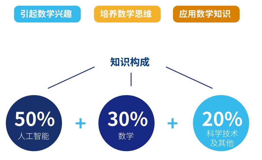 《AI编程与数学兴趣》是人工智能、机器人、编程与数学兴 趣 培 养 人 工 智 能 编 程 创 新 课 程 ,是 AISTEAM课程体系的一门核心课程。课程通过有趣的AI 机器人编程项目,结合互动性较强的数学小游戏或小场 景来激发孩子对数学的兴趣,训练孩子的编程思维,提升 孩子的人工智能素养和创新实践能力。