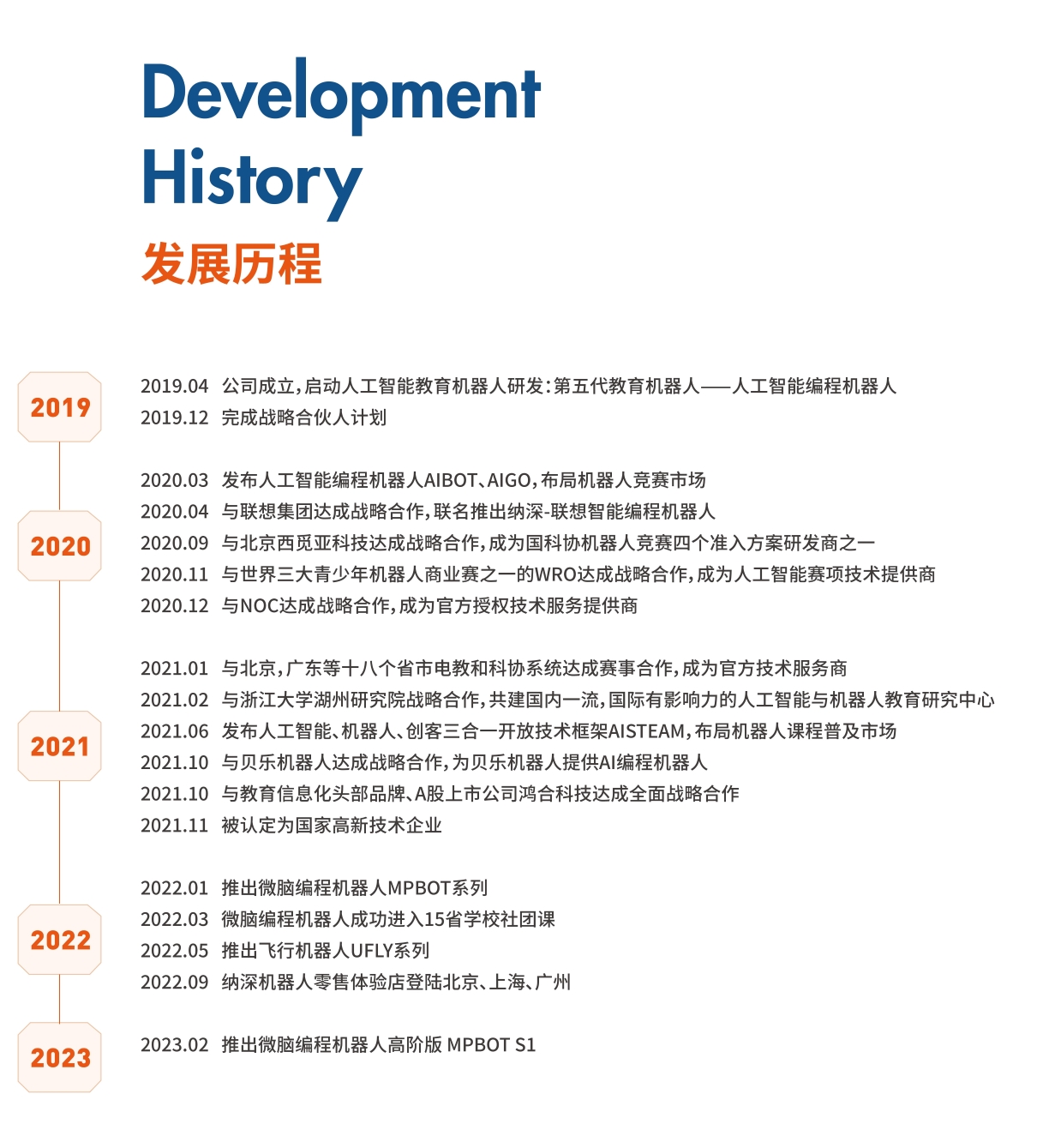 纳深机器人专注于人工智能教育机器人研发,公司以第5代教育机器人为核心的高新技术企业,打造涵盖硬件、软件、竞赛、课程、测评为一体的人工智能教育价值体系,致力于为全球青少年提供好玩、好用,且有教育价值的人工智能机器人产品和课程,产品被应用于全球多个国家的学校和教育机构。