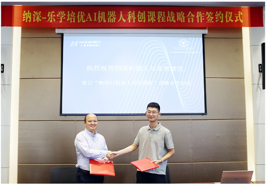 纳深机器人与学科类培训机构的佼佼者-乐学培优签订全面战略合作 协议。纳深AI机器人科创课程将全面入驻乐学培优位于全国20个城市 的校区。为乐学培优全国18万线下学员,700万线上学员提供高品质、 独具特色的以AI编程为核心的STEAM课程服务。